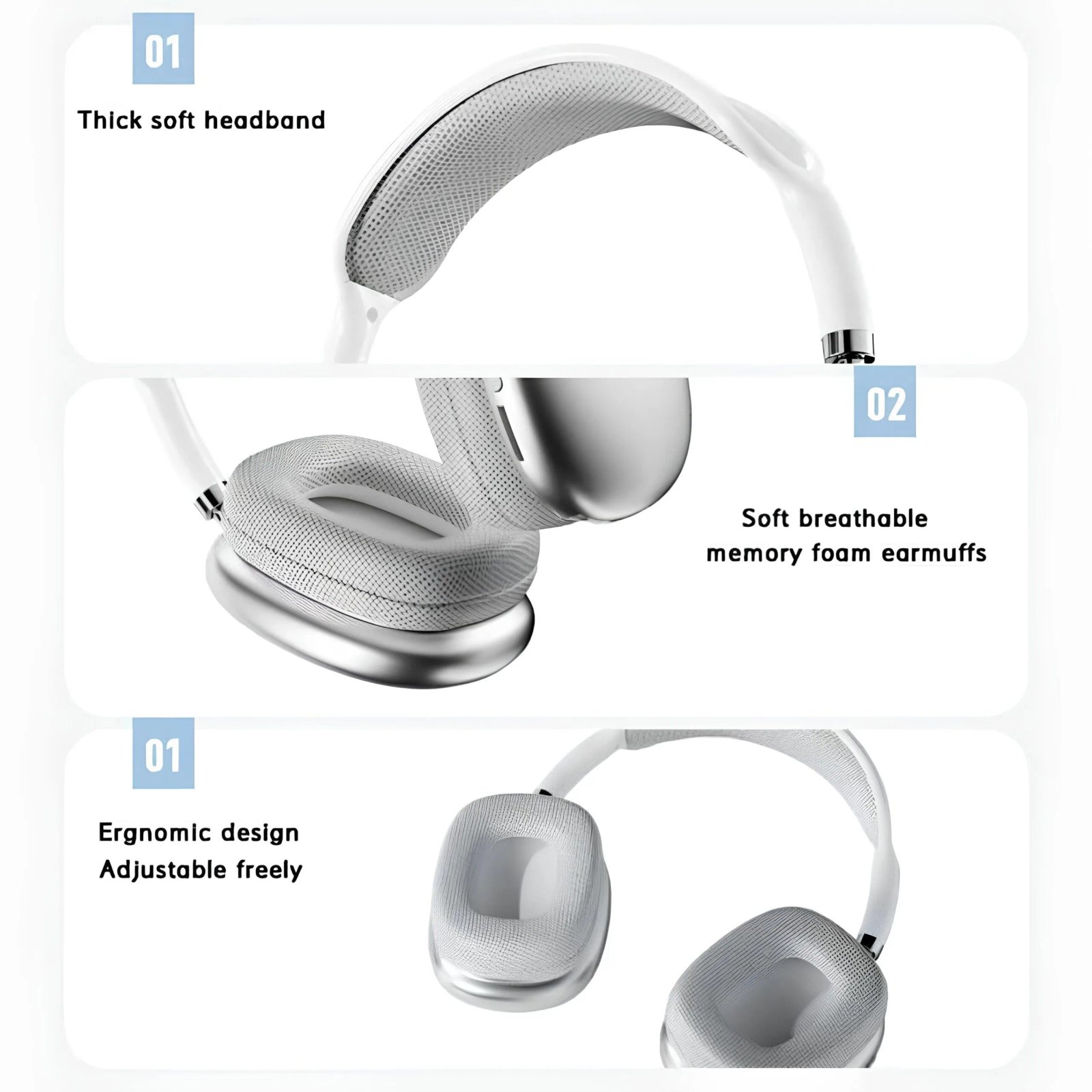 - All-Day Comfort & Ergonomic Design – Ultra-soft ear cushions and an adjustable headband provide a snug, fatigue-free fit for long listening sessions.
